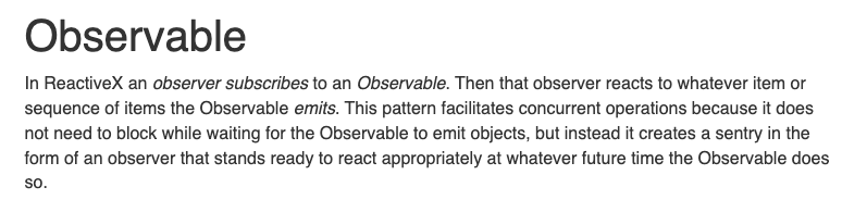 ๊ทธ๋์ Observable์ ์ฝ๋๋ก ๋ํ๋ด๋ฉด ๋ค์๊ณผ ๊ฐ์์